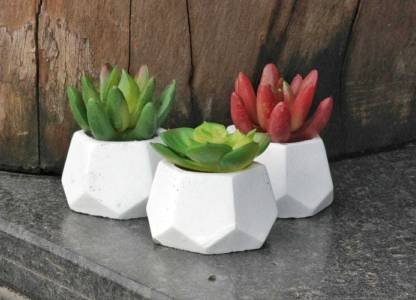 3 pcs Succulent with White Color Geometric Shape Pot with Realistic Effect for Home Decoration Book Shelf Office Decoration Gifting Outdoor Decoration Artificial Plant with Pot (5 cm, Multicolor)